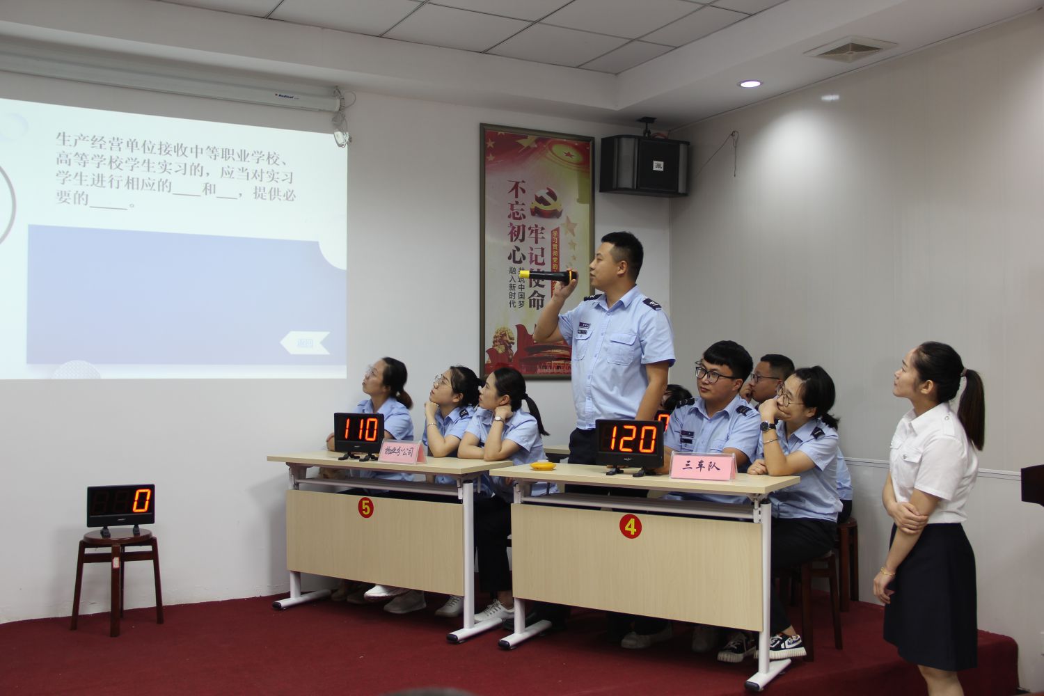 決賽現場,6只隊伍實力強勁,比賽過程懸念迭起,選手們搶抓時間,快速思考,激烈搶答,你追我趕,毫不示弱,上演了一場精彩紛呈的智慧較量。選手們精彩的競答不時引來場下觀眾的陣陣掌聲。經過必答、搶答、風險三輪精彩的答題,最終一車隊代表隊獲一等獎;三車隊代表隊獲得二等獎;五車隊代表隊獲得三等獎。
