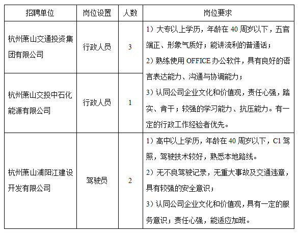 杭杭州蕭山交通投資集團因發展需要,公開招聘工作人員若干名,現將有關事項公告如下: