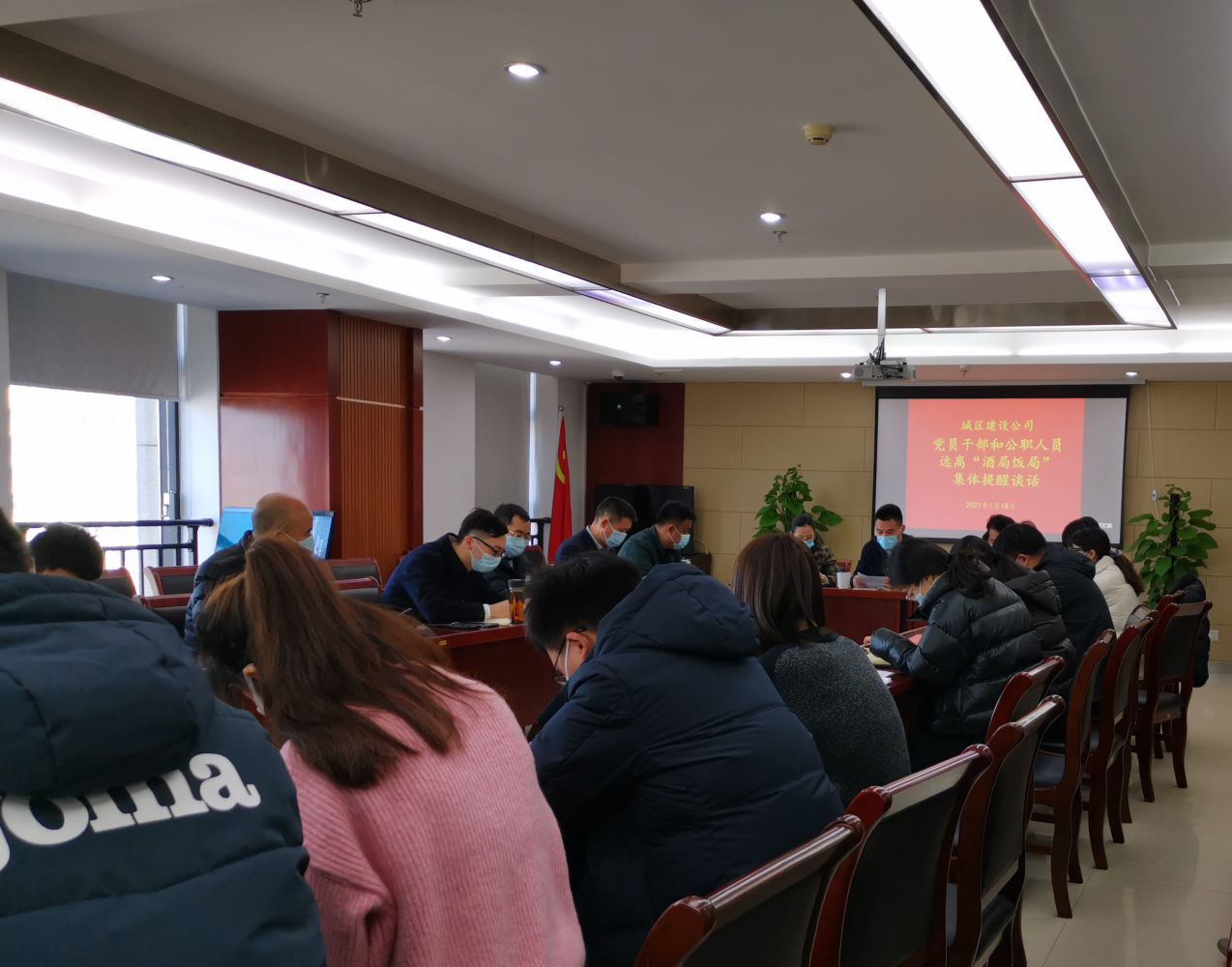 為進一步落實全面從嚴治黨主體責任,筑牢黨員干部職工廉潔自律思想防線,干干凈凈做人,風清氣正過節(jié)。1月18日,城區(qū)建設(shè)公司黨支部召開黨員干部和公職人員遠離“酒局飯局”集體談話提醒會議,公司全體黨員、中層干部、各科室負責人共29人參加。