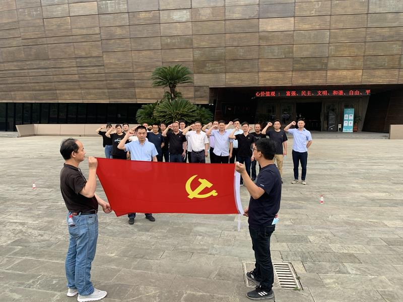 在跨湖橋遺址博物館前,公司黨支部舉行了簡樸而莊重的宣誓儀式。黨支部書記朱華生同志帶領全體黨員在黨旗前重溫入黨誓詞,并強調今天我們在此重溫入黨誓詞,宣讀入黨誓言,就是要讓大家不忘自己的承諾,在日常工作、生活中都要對照檢查自己的一言一行,唯有按照入黨誓詞的要求,用黨章這面鏡子檢查對照,經常進行自我教育、自我提高,才能不斷改進世界觀、人生觀、價值觀,樹立正確的事業觀、工作觀、政績觀,才能始終保持共產黨員的純潔性和先進性。