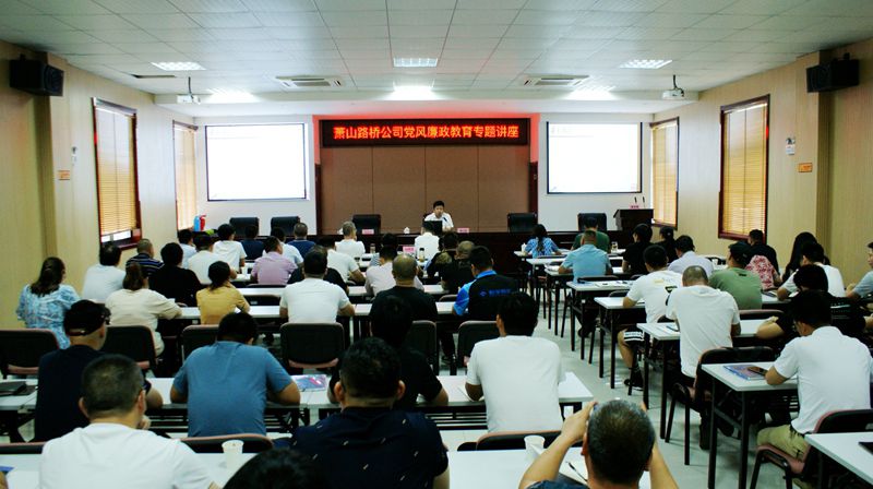 為進一步增強公司黨員干部職工廉潔自律意識,提高公司整體隊伍素質,切實改進工作作風。6月17日下午,路橋工程公司特別邀請了蕭山區紀委、區監委第六紀檢監察室主任傅立國為公司全體黨員干部、財務人員、工程管理人員等重要廉政風險崗位人員開展廉政教育專題講座。蕭山交投集團黨委委員、紀委書記郭維濤,監察室副主任董琳前來聽課并指導工作。公司黨支部副書記、總經理葉利民主持會議。