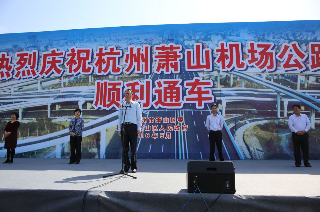 在通車儀式上,集團(tuán)副總經(jīng)理、基礎(chǔ)設(shè)施建設(shè)指揮部指揮長金文華匯報工程建設(shè)有關(guān)情況。區(qū)委副書記、區(qū)長盧春強(qiáng)講話,對杭州蕭山機(jī)場通車表示熱烈的祝賀。他指出,機(jī)場公路作為“省門第一路”,承擔(dān)著杭州蕭山國際機(jī)場旅客疏解的重任,是杭州乃至我省對外經(jīng)濟(jì)交流的交通要道。杭州蕭山機(jī)場高速的順利通車將對提升百姓生活品質(zhì)、改善城市交通狀況、展示杭州城市形象以及促進(jìn)產(chǎn)業(yè)轉(zhuǎn)型升級、發(fā)展空港經(jīng)濟(jì)等都具有十分重要的意義。他希望,全區(qū)相關(guān)部門和單位、沿線鎮(zhèn)街,充分認(rèn)識機(jī)場公路改建工程對市區(qū)兩級經(jīng)濟(jì)發(fā)展和保障國際峰會順利召開的重要性,切實增強(qiáng)使命感和責(zé)任感,以更高的視野站位、更強(qiáng)的組織領(lǐng)導(dǎo)、更實的舉措手段、更精準(zhǔn)的服務(wù)能力,一如既往地支持機(jī)場公路改建工程建設(shè)。項目業(yè)主、監(jiān)理及施工單位,要加強(qiáng)協(xié)調(diào)配合,繼續(xù)嚴(yán)把工程進(jìn)度、質(zhì)量、安全、廉政等重要環(huán)節(jié),按時按質(zhì)完成地面道路部分,把機(jī)場公路改建工程打造成為人民滿意、社會認(rèn)可、專家肯定的精品示范工程。