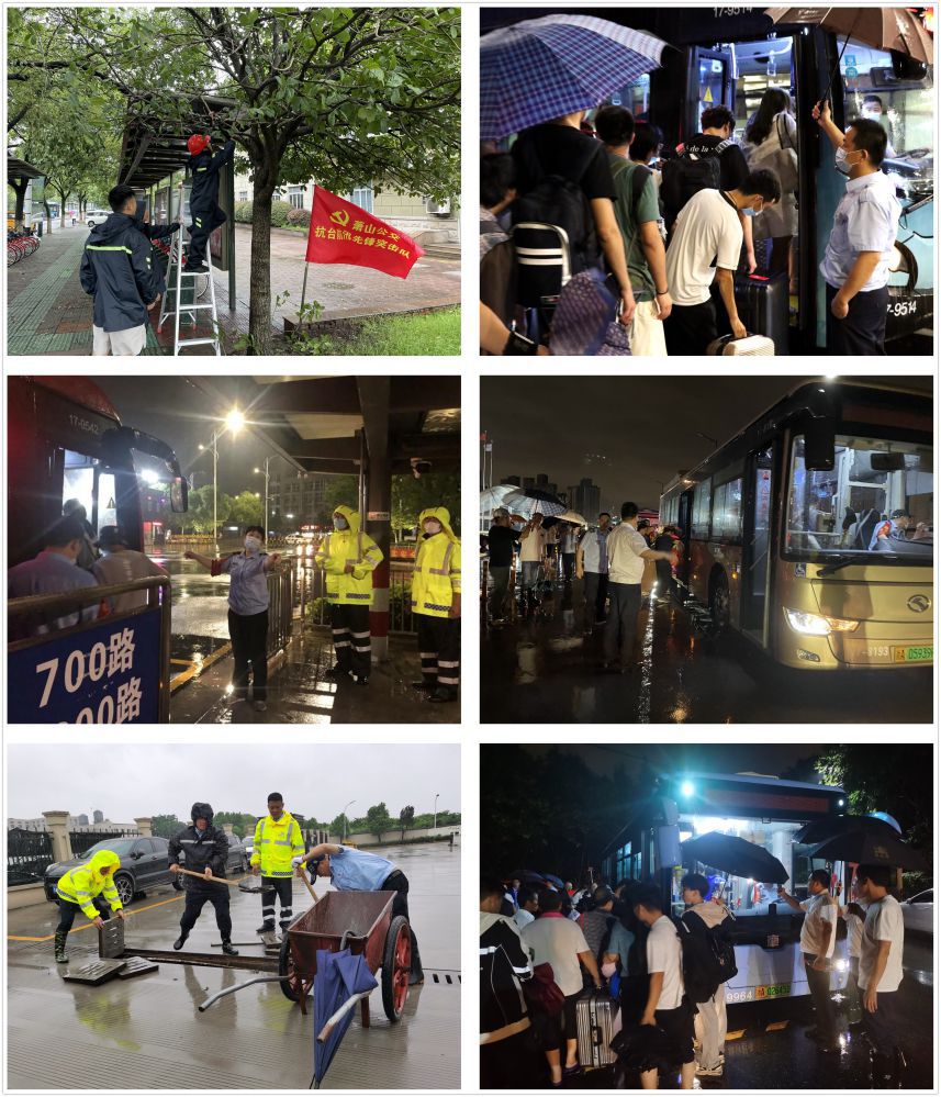 責(zé)任扛起來,黨旗飄起來。面對“煙花”的持續(xù)發(fā)威,公司黨委充分發(fā)揮戰(zhàn)斗堡壘作用,引領(lǐng)干部職工迎難而上、全力奮戰(zhàn);廣大黨員干部挺身而出、率先垂范,紛紛寫下請戰(zhàn)書加入先鋒突擊隊。抗臺防汛期間,公司全體班子、50余名中層干部、60余名管理人員以及2000余名一線職工甘愿放棄休息,各車隊冒著瓢潑大雨下線路、進站房,全面強化現(xiàn)場督導(dǎo)宣教,加強運營線路勘察預(yù)警;各職能部室沖在第一線、戰(zhàn)斗最前沿,分赴各重點場站及時疏導(dǎo)排水,消除內(nèi)澇隱患,并持續(xù)跟進道路通行情況,確保隨時掌握汛情;廣大黨團志愿者積極響應(yīng)黨組織號召,冒雨參加道路巡查、交通引導(dǎo)、隱患排查、排澇除險等志愿服務(wù),共同凝聚起抗臺防汛的強大力量。