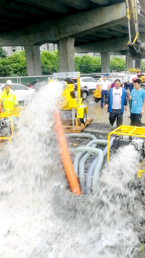 由于排水設(shè)備無法跟上降雨量,公司當(dāng)即請(qǐng)示集團(tuán)要求應(yīng)急采購(gòu)5臺(tái)(排水量:150立方/小時(shí))、2臺(tái)(排水量:340立方/小時(shí)),7臺(tái)新家伙第一時(shí)間內(nèi)全部到點(diǎn)作業(yè),圓滿完成排水搶險(xiǎn)任務(wù)。截止到目前為止,時(shí)代大道南岸花城恢復(fù)雙車道通行。