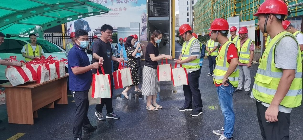 工作人員將一份份防暑慰問品交到工地一線人員手中,對他們不畏烈日高溫,堅守崗位的工作態(tài)度和精神風(fēng)貌表示贊賞,并仔細(xì)詢問了他們的工作情況和身體狀況,叮囑他們要做到勞逸結(jié)合,順利健康度過高溫時節(jié)。