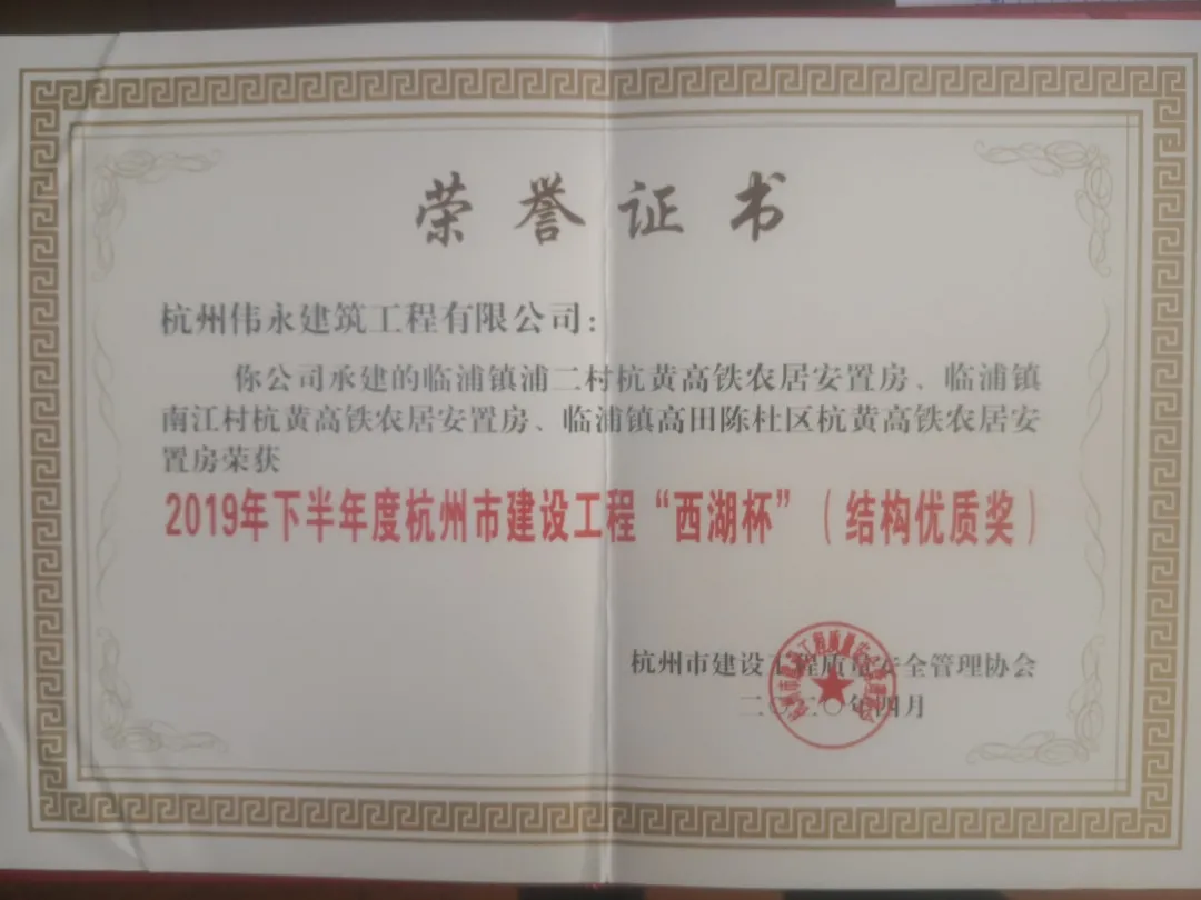 2020年4月,杭黃安置房項目獲2019年下半年度杭州市“西湖杯”結構優質獎