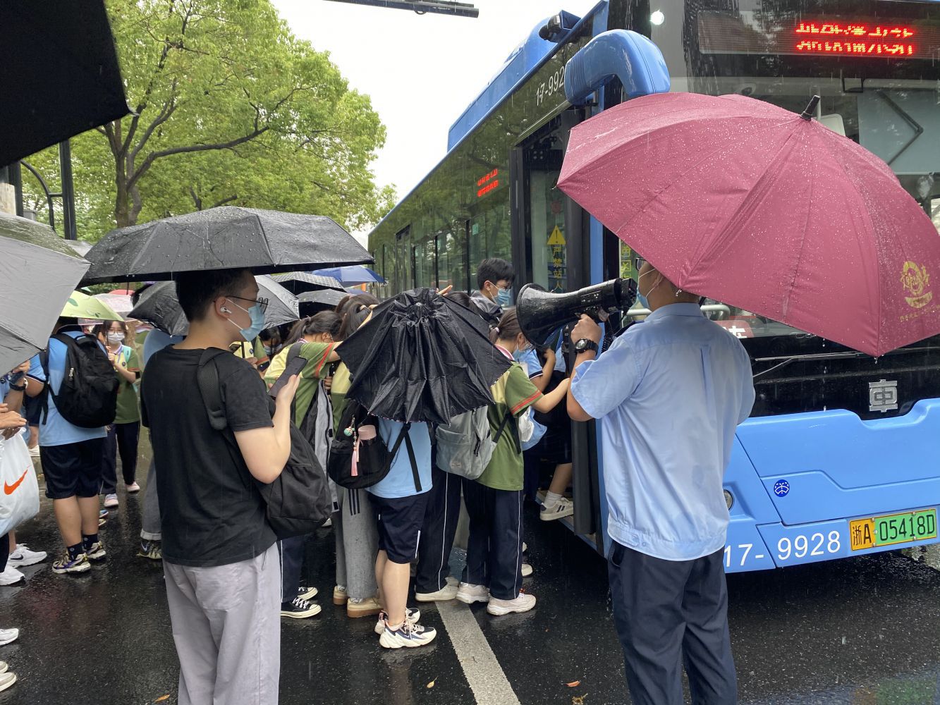 二、全力護學。為確保極端天氣下學生安全上下學,公司進一步加強求知專線客運管理,提前在專線途經(jīng)道路排查道路積水風險點,并安排專人在求知專線現(xiàn)場做好秩序維護,以安全有序的公交服務(wù)為學生保駕護航。