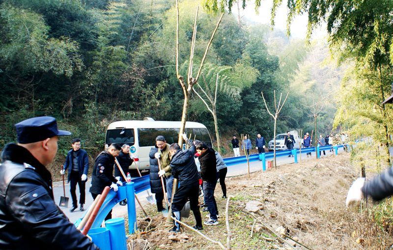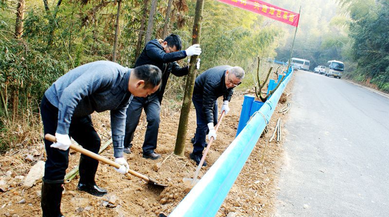 1月4日上午,2022年元旦公休后上班第一天,河上鎮(zhèn)眾聯(lián)村骨干林道邊上笑語不斷,來自區(qū)農(nóng)業(yè)農(nóng)村局、河上鎮(zhèn)與蕭山路橋工程公司的40余名干部員工,拿著鐵鍬等工具,熱火朝天地在林道邊上種植防護林。