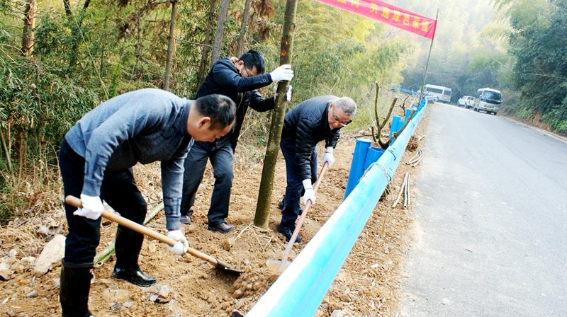 此次義務植樹活動由區(qū)農(nóng)業(yè)農(nóng)村局牽頭,路橋工程公司組織落實,主要是在河上眾聯(lián)骨干林道二邊種植黃山欒樹、紫薇等樹木,大家你扶樹來我培土,每個環(huán)節(jié)都互相配合、通力合作,經(jīng)過半個多小時的努力,200多株樹木就精神抖擻地傲立于林道邊上,期待來年的生根發(fā)芽、綠樹成蔭。