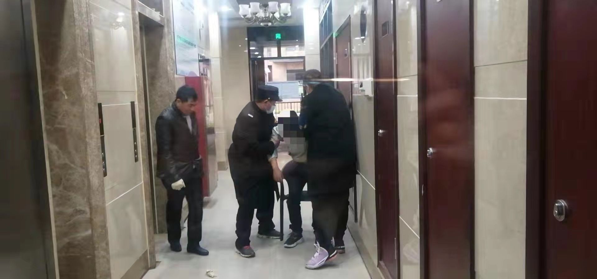 3月22日16時(shí)40分,緊盯著監(jiān)控屏幕的南區(qū)消控員隋吉麗,忽然看見(jiàn)一名先生暈倒在了電梯門口,隋吉麗見(jiàn)狀急忙把情況通知到了工作群,呼吁就近人員前往救援。