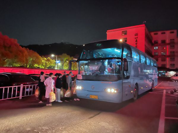 4月5日,因杭州市余杭區(qū)、下沙區(qū)、蕭山區(qū)內出現(xiàn)疫情病例,剛剛援滬回來的5輛大巴來不及休整再次出征,護送蕭山區(qū)各大醫(yī)院醫(yī)生前往杭州余杭良渚、下沙、蕭山區(qū)盈豐街道等支援核酸采樣工作。