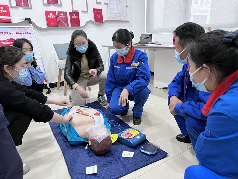 培訓(xùn)活動(dòng)中,老師為大家詳細(xì)講解了心肺復(fù)蘇CPR的現(xiàn)場(chǎng)操作流程,重點(diǎn)講解了自動(dòng)體外除顫儀AED的操作步驟,并耐心指導(dǎo)大家參與體驗(yàn)操作。AED是一種便攜式急救設(shè)備,操作簡(jiǎn)便,可被非專(zhuān)業(yè)人員使用于搶救SCD(心源性猝死)患者。為進(jìn)一步完善加油站公共急救設(shè)施,健全突發(fā)事件應(yīng)急救治機(jī)制,公司已分別在建盈南、建盈北、蜀山三個(gè)站點(diǎn)配備AED設(shè)備。
