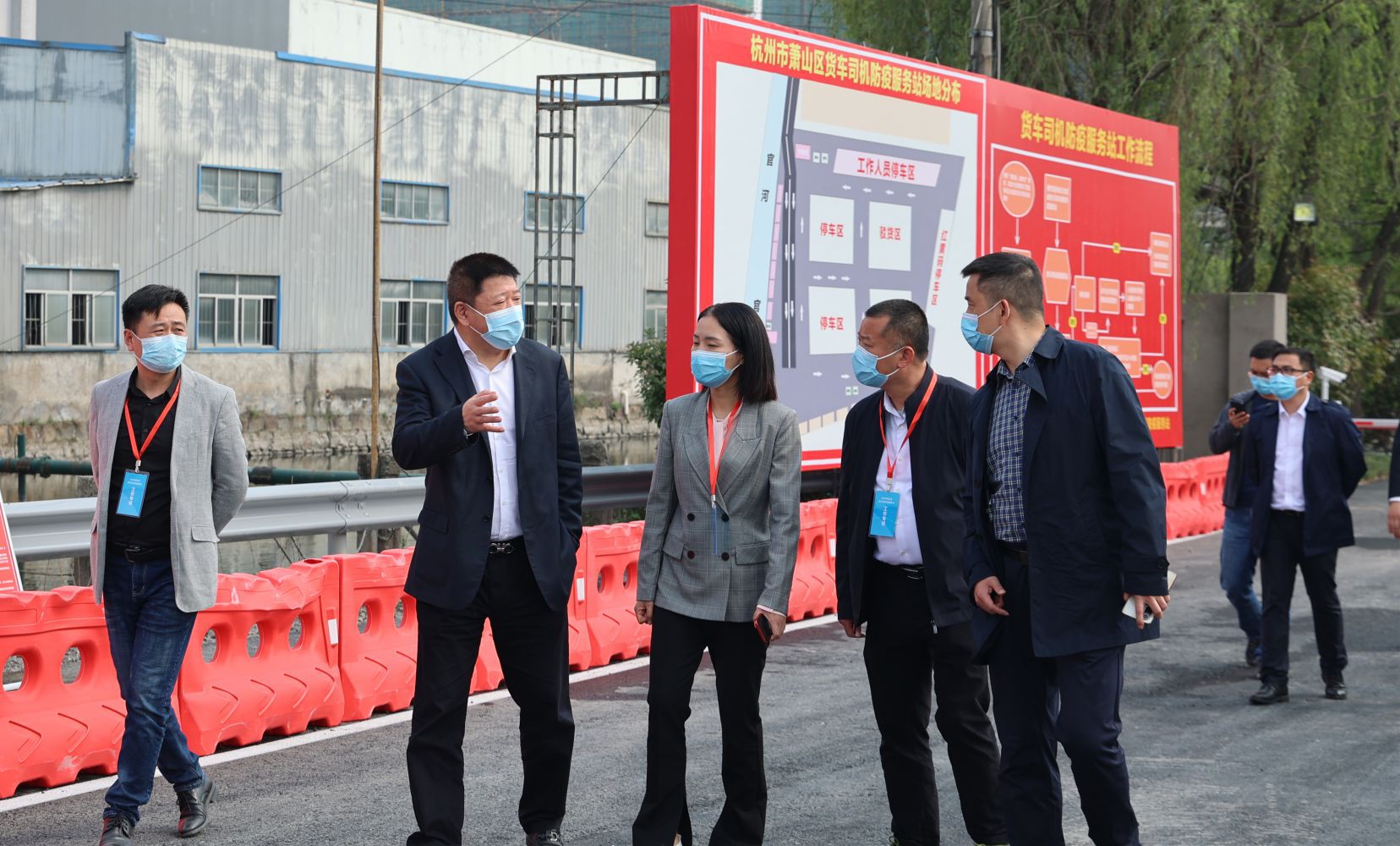 4月18日下午,副區長方軍一行檢查新塘街道姑娘橋村貨車司機防疫服務點運行情況。區有關部門、單位、鎮街負責人,集團副總經理鐘波陪同。