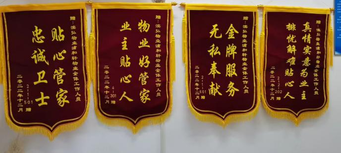 濱弘物業(yè)自2022年1月進(jìn)駐臨浦項(xiàng)目以來,為打造品質(zhì)物業(yè)、精品物業(yè),不斷的深挖現(xiàn)有資源,不惜成本的投入人力、物力為業(yè)主排憂解難,解決實(shí)質(zhì)性問題,做好各類服務(wù)。贏得了業(yè)主的一致認(rèn)可和表?yè)P(yáng),共計(jì)收到22面錦旗。
