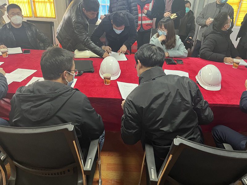 會上,五方主要代表分別對工程質量、安全要求進行匯報,保證按照規(guī)范、圖紙要求,保質保量完成安置房建設任務,交給黨灣人民一個滿意的工程。
