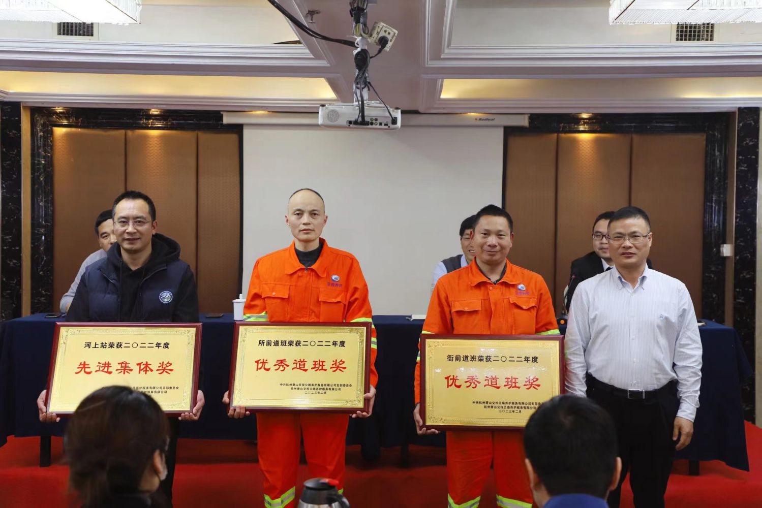 會議表彰了2022年度公司先進集體、優(yōu)秀道班、先進工作者、敬業(yè)奉獻獎。
