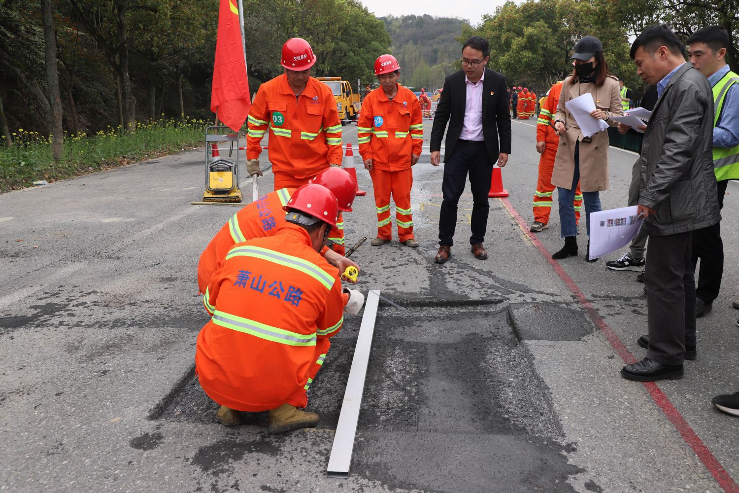 為響應(yīng)“紅色領(lǐng)杭·奉獻亞運”大考大賽號召,進一步發(fā)揮基層黨組織和共產(chǎn)黨員戰(zhàn)斗堡壘作用與先鋒模范作用,也為進一步激發(fā)基層養(yǎng)護工人“學(xué)技術(shù)、鉆業(yè)務(wù)、提技能”的積極性,努力鍛造一支業(yè)務(wù)精、能力強、作風(fēng)好的公路養(yǎng)護隊伍,實現(xiàn)“席地而坐”、“杯水不溢”的通行環(huán)境,結(jié)合公司2023年“2430”黨建品牌創(chuàng)建行動計劃安排,3月28日下午,杭州蕭山交投公路養(yǎng)護服務(wù)有限公司在G235與S307一段封閉道路內(nèi)組織開展了第一屆坑槽修復(fù)技能競賽。公司班子領(lǐng)導(dǎo)參加。