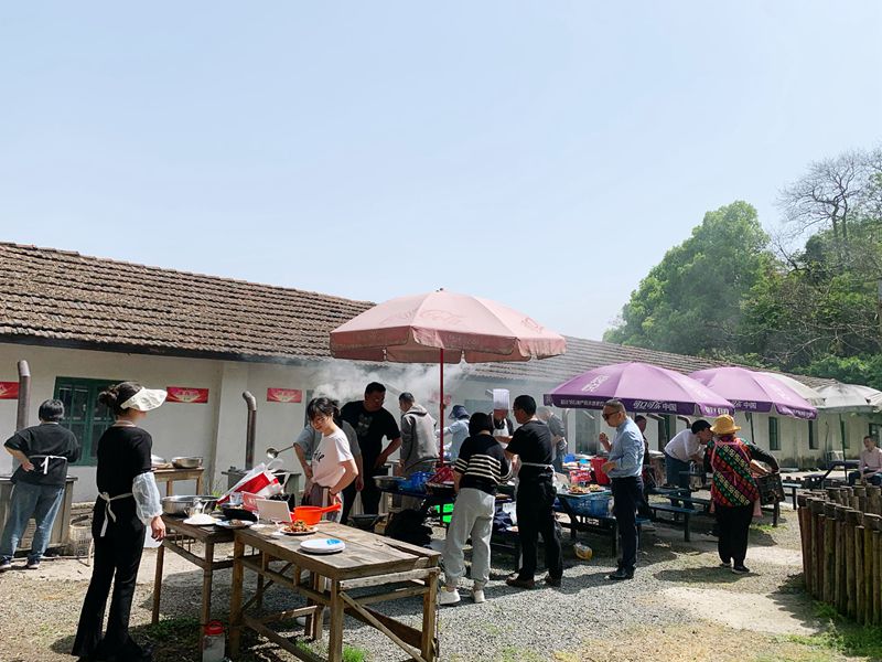 參賽隊伍分工明確、配合默契、“各顯神通”,有專門負責掌勺的、燒柴火的、切菜備菜的、準備調料的、清洗廚具的,活動現場,大家忙得不亦樂乎。經過一番親密無間的努力,帶著濃濃煙火氣的美食作品一道道呈現,看起來秀色可餐,每道菜的擺盤也可以看出大家的用心。