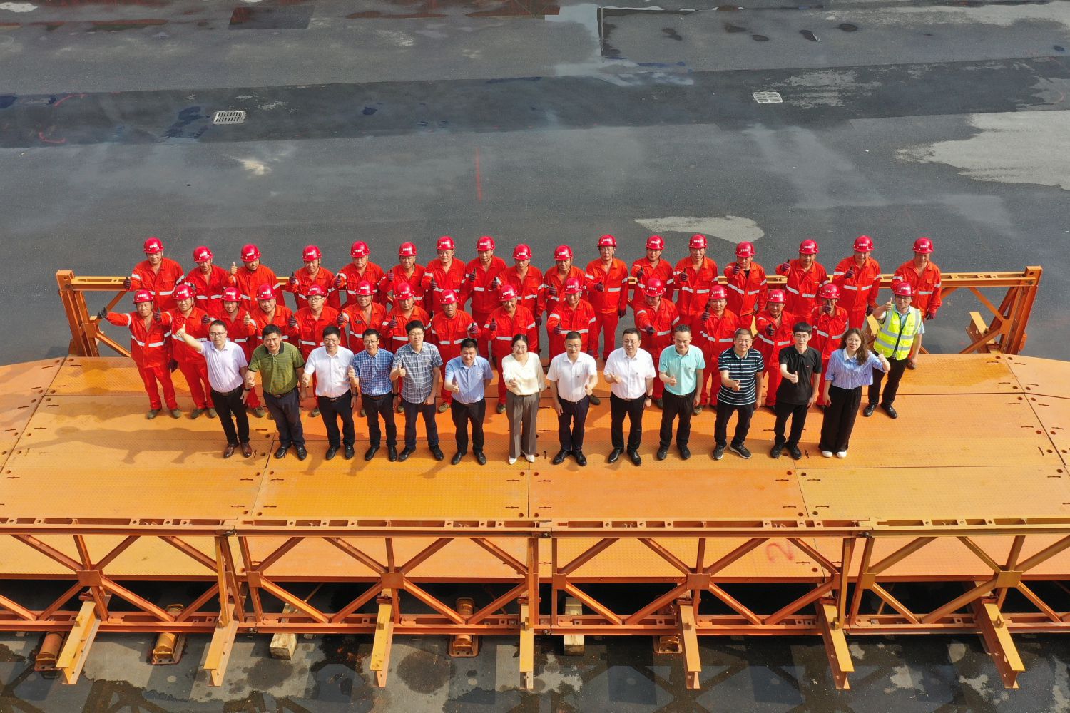 在河水暴漲,流水湍急,巡查橋臺處被洪水沖塌或主梁板開裂,影響車輛和行人通行,打開《公路橋梁突發事件應急預案》,宣布啟動防汛應急響應,迅速集結公路應急響應隊伍并上報上級相關部門報送信息。搶險隊伍先架鼻架,再架正橋,推橋,利用平滾把橋推到河岸的對面,落橋,拆鼻架,搭引橋,鋪橋板,緊螺栓,完成15米長、3.7米寬的貝雷橋架設作業。