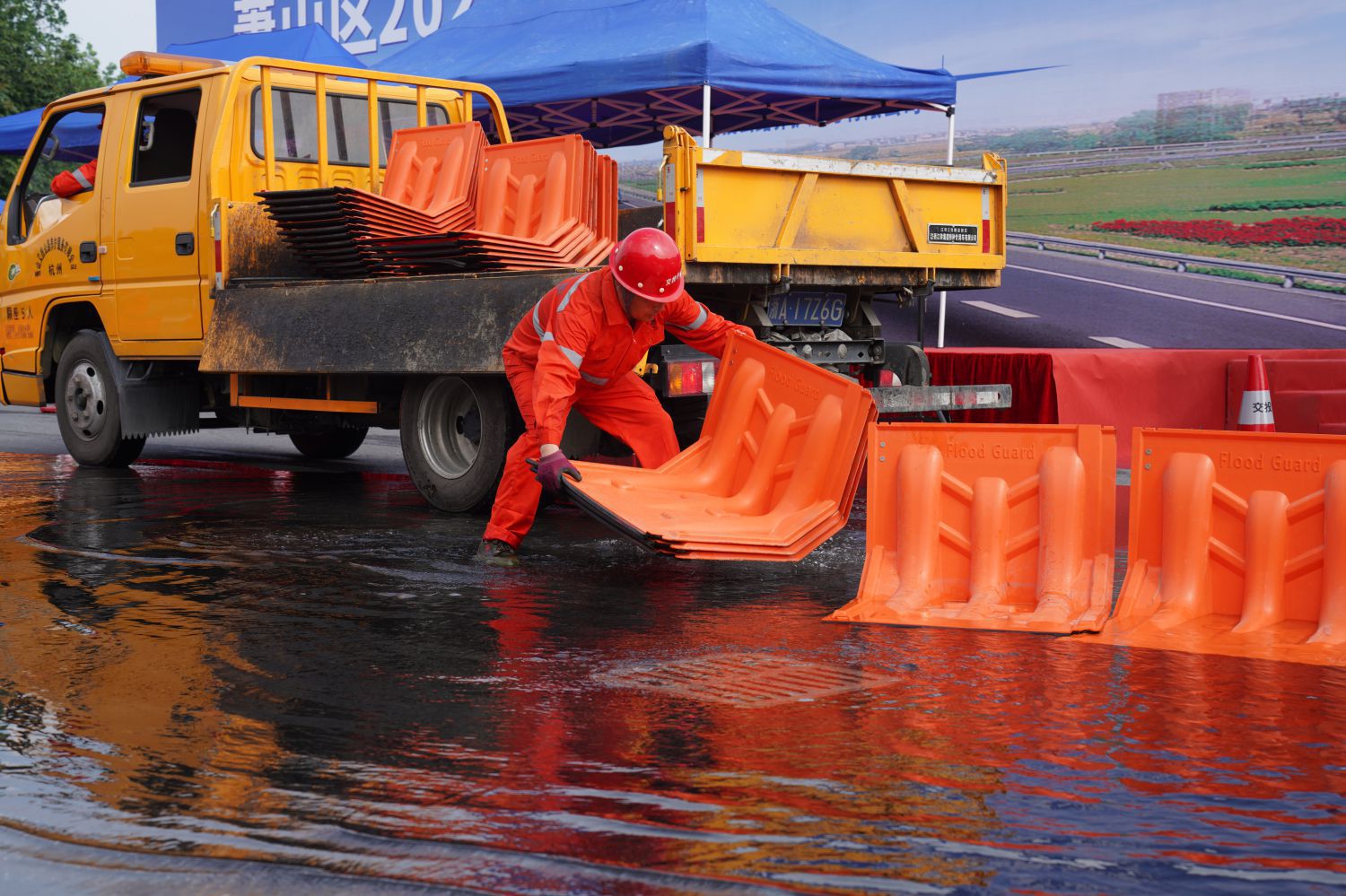 因連日暴雨,排水不暢造成路面積水影響通行安全。做好汛前報警工作,發現路面積水,無法通行立即報告預警,打開三防應急預案,維護組和搶險組到場后負責引導。維護保障組立即對事發路面進行封閉護,引導通行,設立警示標志和安全警示區,引導往車輛及行人,按裝擋水板;防汛搶險組立即對事發路面實施排水搶險,應急水泵負責排水,吸污車負責管道疏通。結束后撤除路面維護,恢復通行。
