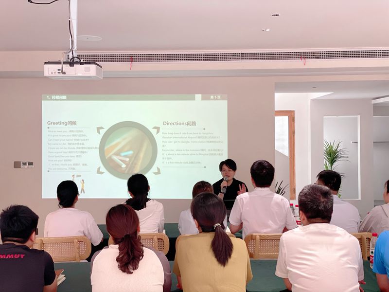 英語培訓由公司綜合辦公室副主任蔡鳴明進行授課,蔡主任是英語翻譯專業出身,持有英語專業八級(TEM8)和中學英語教師資格證。培訓充分結合迎亞運工作要求和公司崗位工作服務需求,分別從問候問路、美麗杭州、運動杭州、加油站實用英語四個板塊展開,通過中英文雙語進行授課。課上,大家積極互動,通過跟讀、跟練和情景演繹激發了對英語學習的興趣,有效掌握了亞運英語服務的技巧。