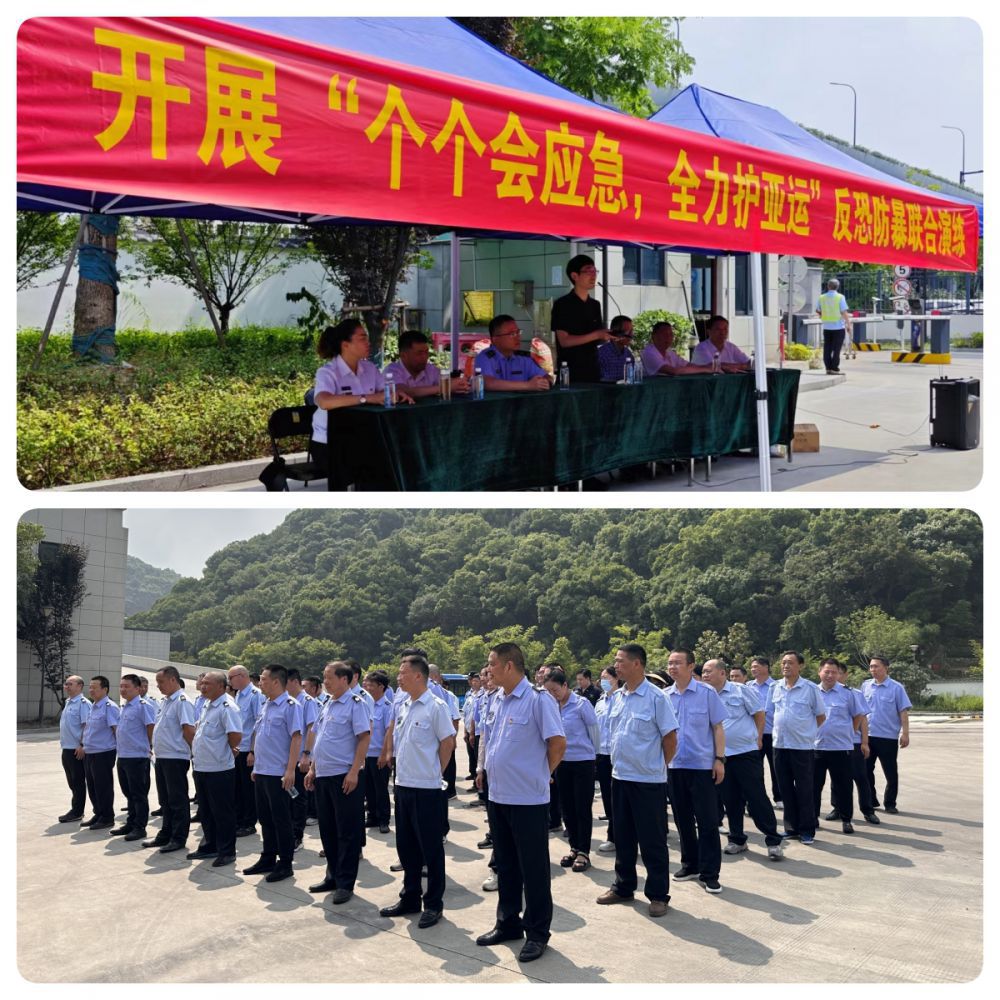 為貫徹第二十二個全國安全生產月“人人講安全,個個會應急”的主題,全力做好杭州亞運賽事期間的安全保障工作,提高公交突發事件應急處置能力,強化職工反恐意識和自防自救能力,營造良好的安全氛圍。近日,蕭山公交在北干停保基地開展反恐防暴突發事件應急演練。區交通運輸局安監科副科長戚波波,區交通運輸局行政執法隊執法指導中隊隊長施銘,區交投集團企管部副經理王軍民等領導蒞臨指導,公司班子成員、各部門安全負責人、義務消防隊員、班組長代表、司機代表參加此次演練,公司總經理助理周國慶主持。