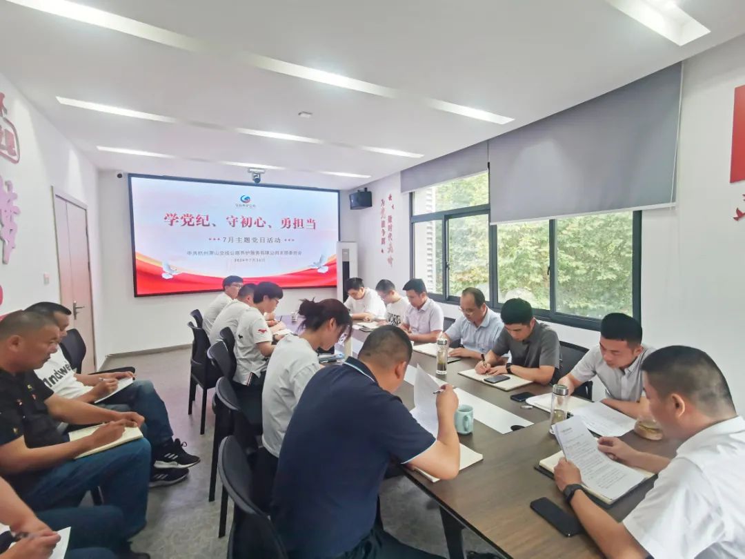 會上,黨支部書記陳鋒帶領(lǐng)大家學(xué)習貫徹黨的二十屆三中全會、區(qū)警示教育會、集團半年度黨建工作會議有關(guān)精神。支部委員傳達學(xué)習《浙江黨史上的“為黨守紀”故事啟示錄》。
