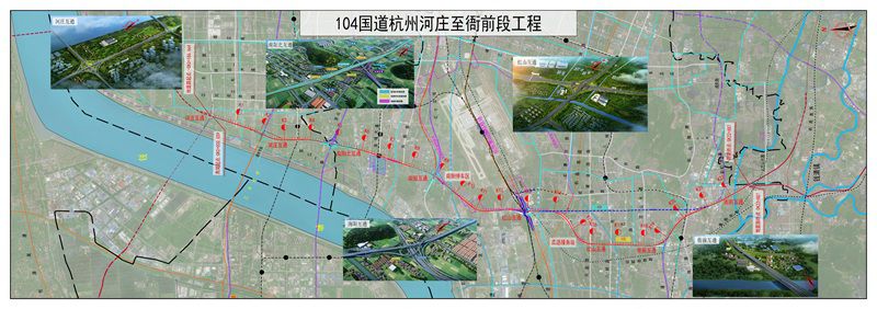 104國道杭州河莊至衙前段工程主線起點(diǎn)位于杭州錢塘區(qū)河莊街道,規(guī)劃濱江二路與江東三路交叉處,路線向南延伸,經(jīng)南陽街道、紅山農(nóng)場、瓜瀝鎮(zhèn),終于杭州紹興交界處衙前鎮(zhèn),與104國道紹興段順接,路線全長約22.8公里(其中蕭山段長約18.1公里)。工程按一級公路標(biāo)準(zhǔn)設(shè)計建設(shè),采用“高架橋結(jié)合地面道路”形式,高架橋設(shè)計速度80公里/小時,地面道路設(shè)計速度60公里/小時。目前,一階段工程已完成總進(jìn)度的35%。 |