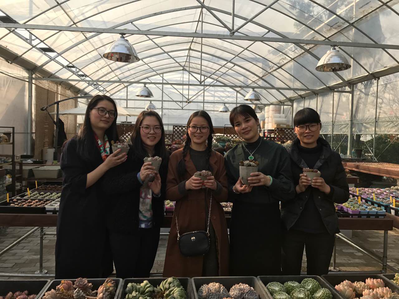 公司女職工在多肉植物園內進行了一場輕松愉快的茶話會。
