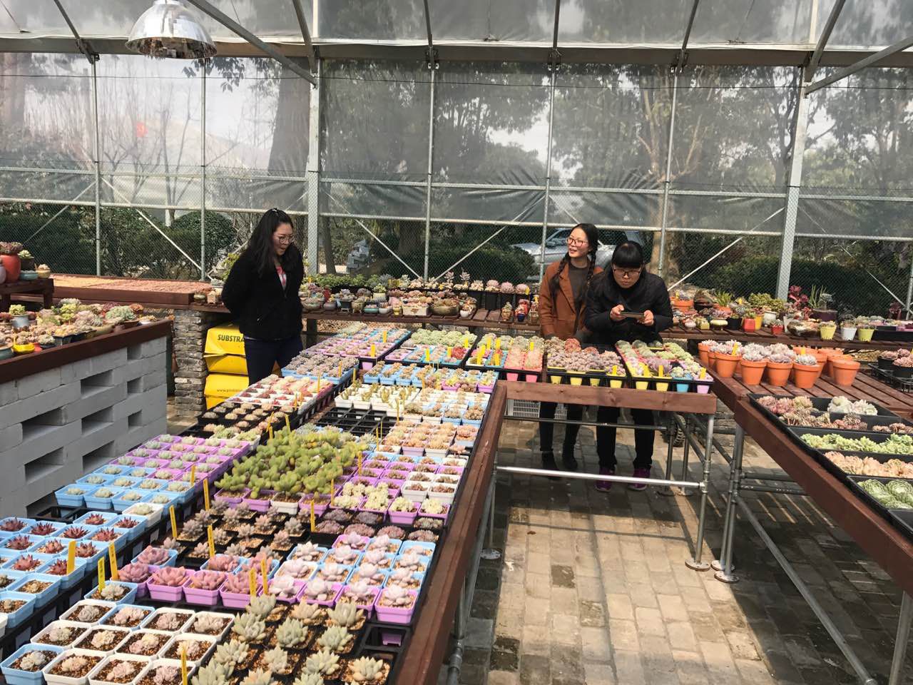 品種豐富、形態各異的多肉植物立刻贏得了女職工的喜愛,紛紛拍照留念。