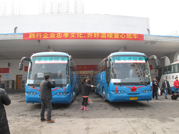 今年已是“愛心班車”第11次啟程。由蕭山長(zhǎng)運(yùn)公司提供的這兩列“愛心班車”全程免費(fèi),服務(wù)對(duì)象主要是農(nóng)民工、環(huán)衛(wèi)工等外來在蕭務(wù)工人員。這既是蕭山長(zhǎng)運(yùn)回饋社會(huì)、致力公益的一項(xiàng)老傳統(tǒng),也是蕭山長(zhǎng)運(yùn)在交投集團(tuán)領(lǐng)導(dǎo)下踐行忠孝文化、實(shí)現(xiàn)文化強(qiáng)企的一項(xiàng)新舉措。由于旅途漫長(zhǎng),公司還貼心地為乘客們準(zhǔn)備了早餐和飲用水,為他們送上濃濃的關(guān)切與祝福。