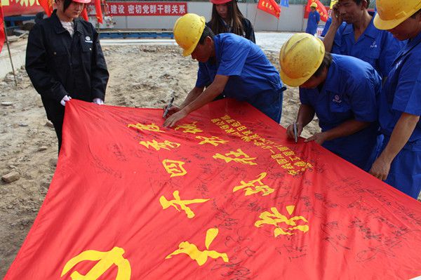 為充分發揮項目部黨組織的戰斗堡壘作用和廣大共產黨員的先鋒模范作用,廣泛動員全體參建黨員干部和員工,全身心投入到項目建設中去。杭州蕭山機場公路改建工程TJ07標段于10月16日舉行了“大干四季度、決戰在杭城”的黨建主師活動及授旗儀式。活動中,項目部黨工委分別向“青年突擊隊”授旗,施工單位公司董事長、總經濟師及項目部經理分別向“黨群協理員”頒發了證書。最后,參加此次活動人員分別在“大干四季度、決戰在杭城”黨建主題活動旗上鄭重簽名,以此來做出加快推進機場公路改建工程的承諾。