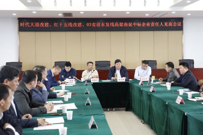 4月15日下午,時(shí)代大道改建工程、紅十五線改建工程、03省道東復(fù)線高架南延工程中標(biāo)企業(yè)負(fù)責(zé)人見面會(huì)在杭州蕭山交通投資集團(tuán)有限公司708會(huì)議室組織召開。