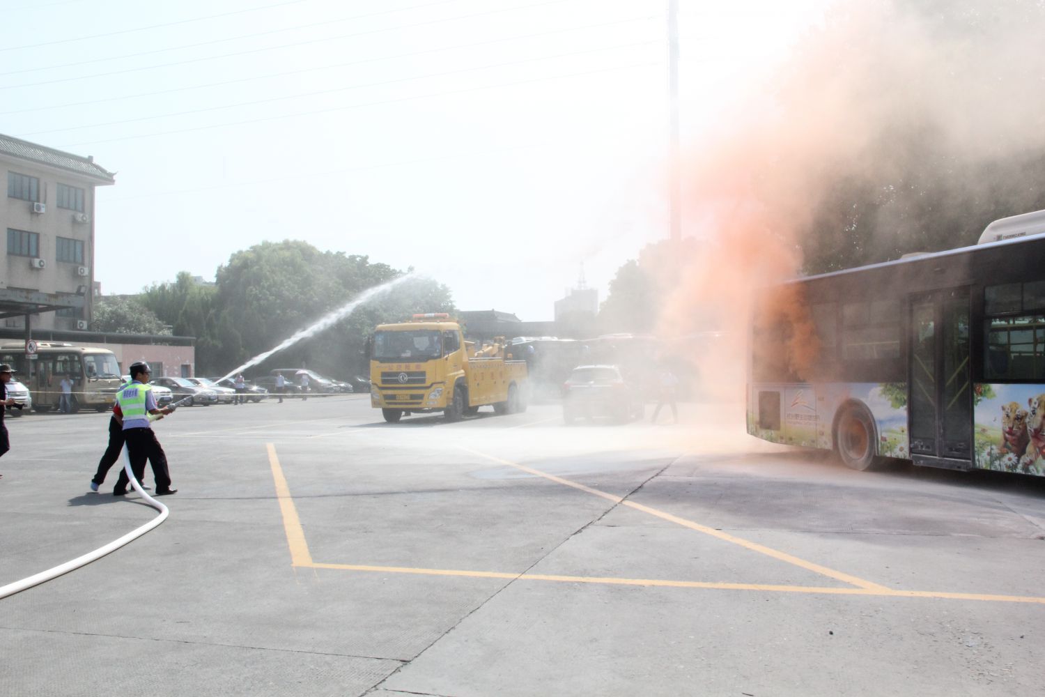 為深入貫徹第十七個全國安全生產月“生命至上,安全發展”活動主題,進一步加強公司消防、反恐安全管理處置配合工作,增強全體員工消防、反恐意識及應急處置能力。根據公安部門“四聯三防”和公司“安全生產月”活動要求。6月13日下午蕭山公交在通惠路公交站舉行“消防、反恐突發事件(“135”快速反應圈)應急處置演練”,區運輸管理處、區交通治安派出所、區消防隊等嘉賓,以及公司吳根法總經理、王黎洪書記等班子領導蒞臨指導、各部門、各車隊負責人、一線員工觀摩了此次演練。
