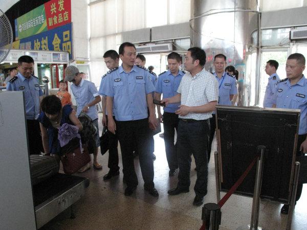 南京青奧會即將拉開戰(zhàn)幕。為全力做好青奧會期間安保工作,7月22日,區(qū)公安分局副局長沈秋羊一行來到蕭山長運(yùn)公司,檢查督導(dǎo)前期準(zhǔn)備工作的開展。公司總經(jīng)理湯偉東、副總經(jīng)理來妙明陪同檢查。