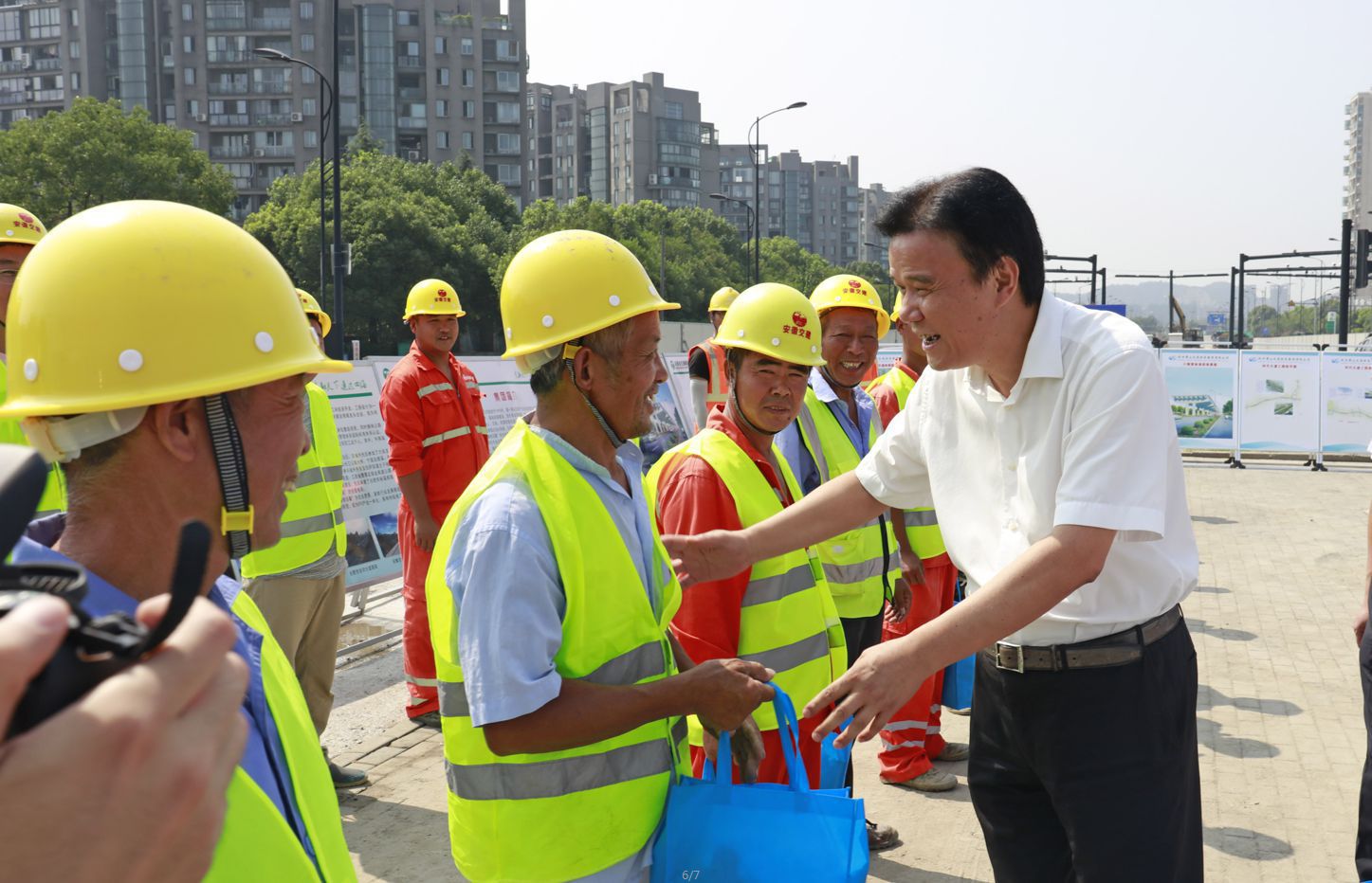 區政協主席洪松法、副區長吳煒煒一行到義橋作業區項目施工現場,對一線工人進行了高溫慰問,發放了夏季防暑慰問品,并叮囑大家做好防暑降溫措施,牢記施工安全。集團黨委副書記、副總經理虞國燦,建管公司、浦陽江公司負責人參加慰問活動。