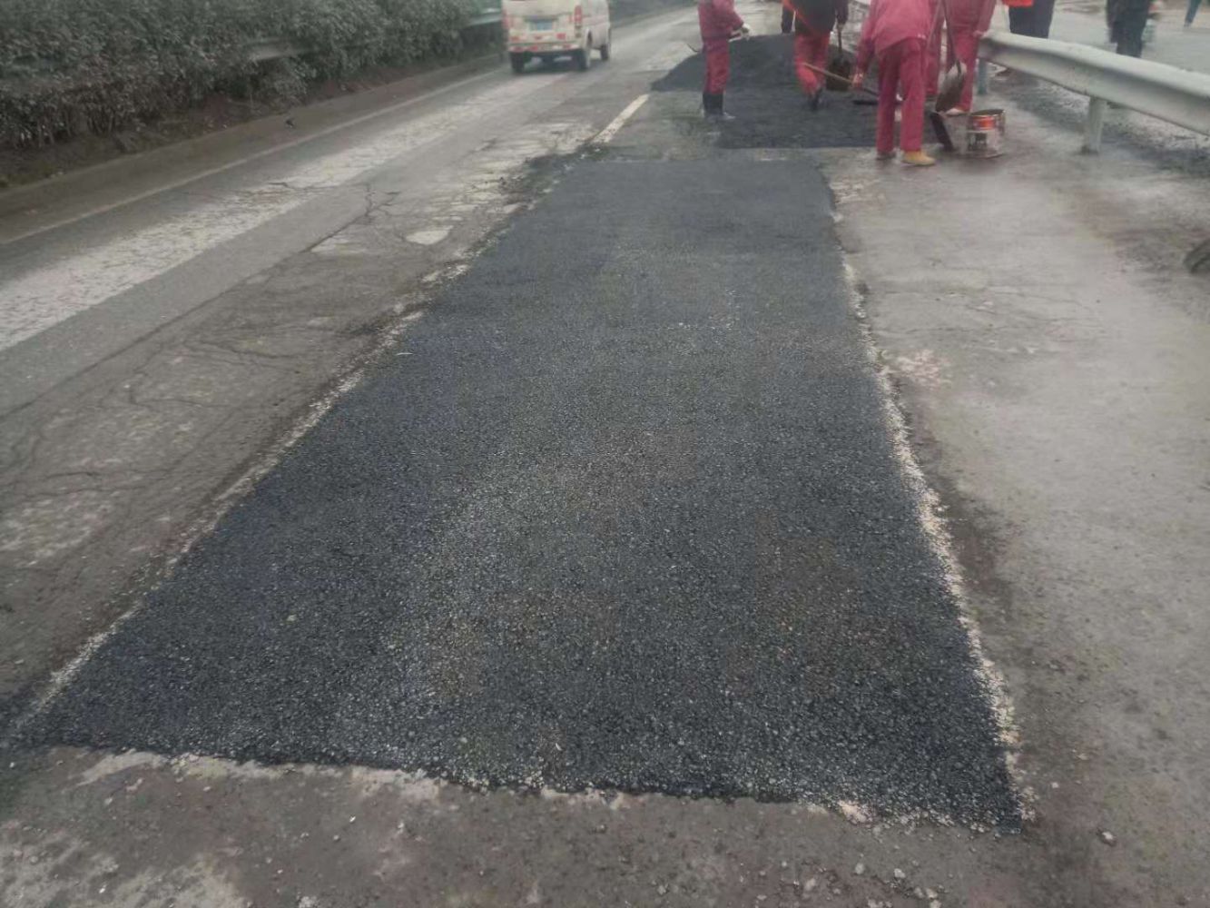 等到11日天氣稍有轉好,集團立即組織施工力量對紅十五全線路面進行巡查,并對路面破損嚴重及坑洞路段采取銑刨后加鋪瀝青修補的方案進行路面修復,共計投入物資熱拌瀝青混凝土600余噸,投入安全巡邏車、銑刨機、鏟車、挖機、壓路機、運輸輛共30余臺套,出動應急人員100余人,累計投入資金達百萬元以上。