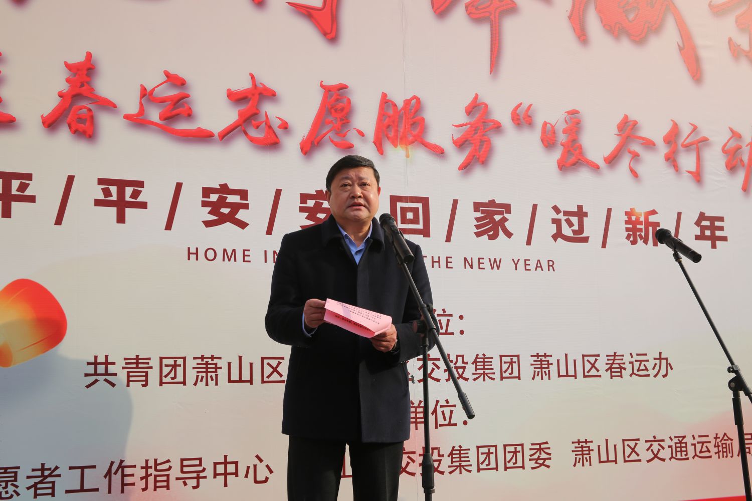 為弘揚“奉獻、友愛、互助、進步”的志愿精神,助力春運工作平安、有序開展,進一步發揮青年志愿者在春運工作中的重要作用,1月21日上午,團區委、區交通運輸局團工委、區交投集團團委聯合在蕭山汽車站舉行“青春志愿行·奉獻新時代”2019年蕭山區春運志愿者服務“暖冬行動”啟動儀式。團區委書記楊芳,集團黨委書記、董事長祝關翔,團區委副書記孔美華,集團紀委書記郭維濤出席啟動儀式,蕭山交投集團志愿服務總隊、區交通運輸局志愿服務總隊、區青年書法家協會共80多名志愿者參加儀式。