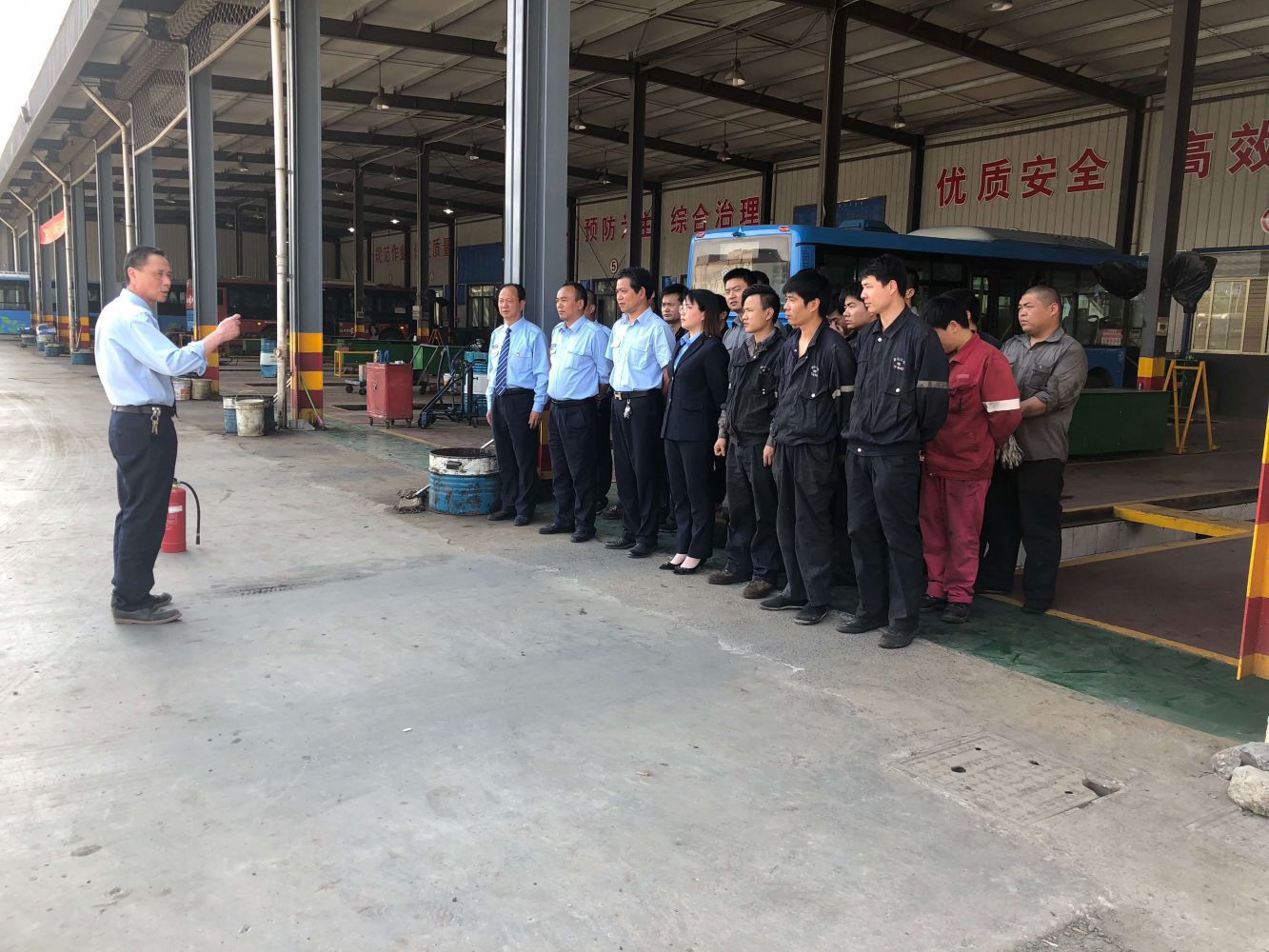 為進一步提高新老員工的安全防范意識,提高突發事件應急處置能力,從源頭上消除安全隱患,4月20日,蕭山公交修理分公司聯合物資供應部組織開展消防應急演練活動。此次演練以新帶老為主,就滅火器使用方法、消防栓使用方法、消防疏散、逃生自救等方面做了詳細講解并進行現場演練,營造了人人了解消防、人人參與消防的濃厚氛圍,使一線員工受益匪淺。