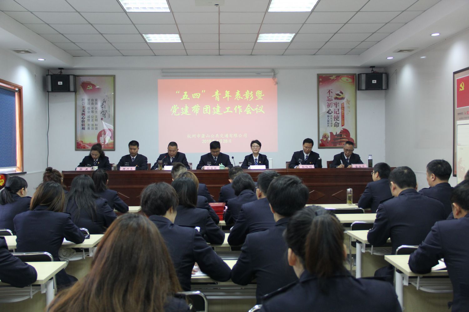在紀念五四運動一百周年即將到來之際,為扎實推進公司黨建帶團建工作,引導各黨支部、團支部進一步加強組織建設,增強凝聚力與戰斗力,4月28日上午,蕭山公交開展“五四”青年表彰暨“黨建帶團建”工作會議,公司張國棟、王黎洪等全體班子領導,各黨支部、各團支部書記及委員,2018年度各類團先進代表等40余人參加,會議由吳勇義副總主持。